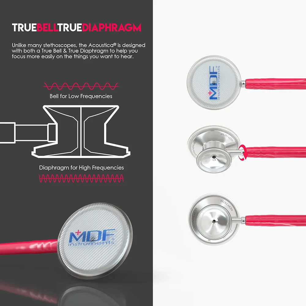 - DUAL HEAD CHESTPIECE designed with a turnable, fully rotating stem and a true bell and true diaphragm to capture high or low frequency sounds as needed. Handcrafted from premium aluminum to deliver the ultimate value in auditory diagnostics with unmatched performance and durability in its lightweight class.